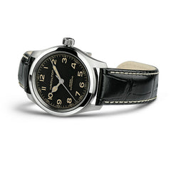 高い視認性のブラックダイヤル、スーパールミノバ®加工を施したヴィンテージ スタイルのベージュの針、ブラックレザーストラップを備え、オリジナルである42mmモデルの主要な美的コードを継承しています。