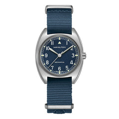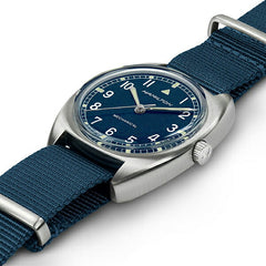 1970年代に英国空軍のために製造されたモデルを蘇らせた「カーキ パイロット パイオニア メカ」。存在感を放つアビエーションブルーのダイヤルは、さらなる進化を遂げたタイムピースとして、腕元でハミルトンの航空計時の歴史を称えます。