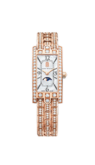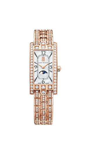 詩情あふれるムーンフェイズ機構が 収められた「HW アヴェニューC™ ミニ・ムーンフェイズ」は、ブランドの華々しい歴史を呼び起こすとともに、輝きに満ちた未来への時を刻み続けます。
