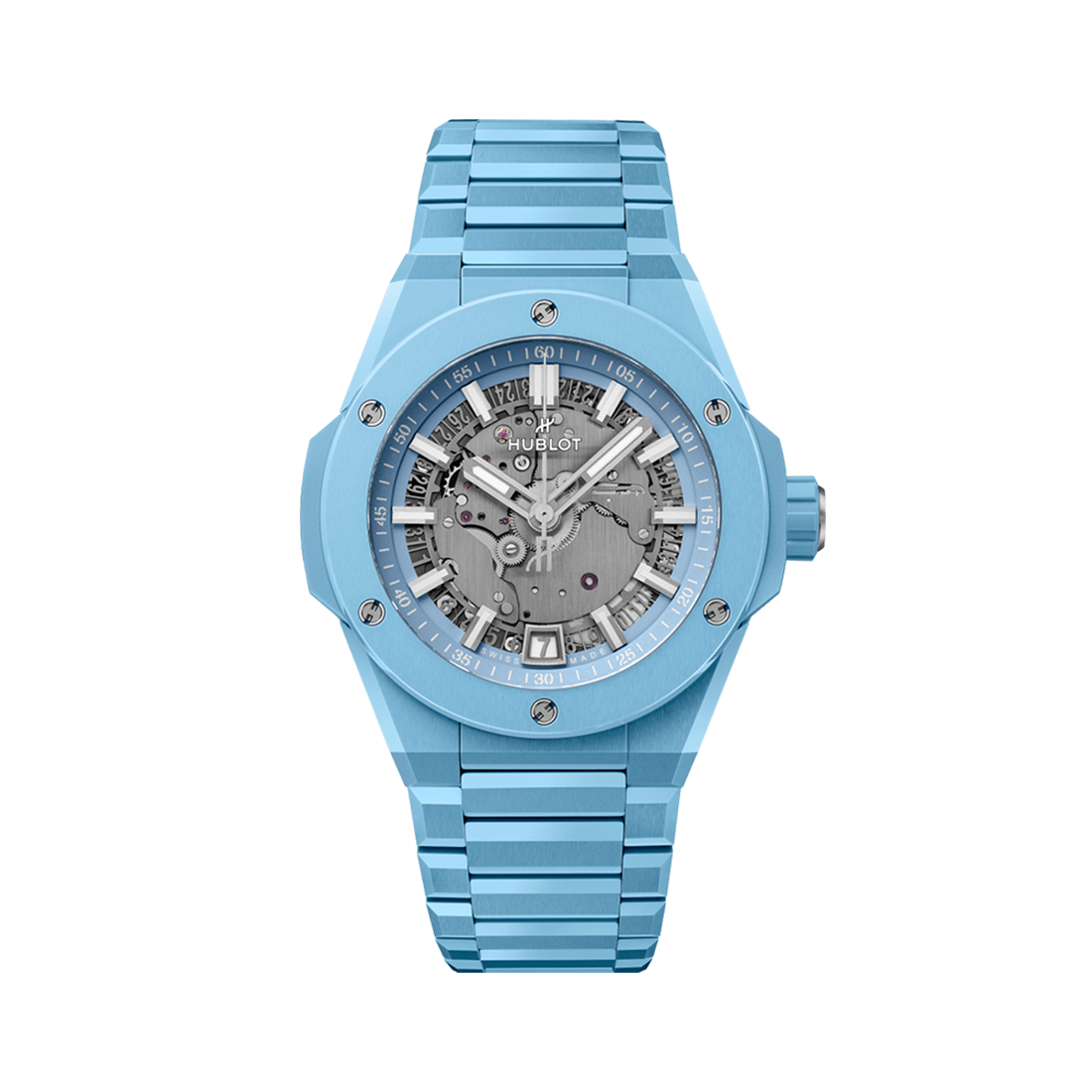 ケース:サテン&ポリッシュ仕上げのスカイブルーセラミック
