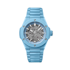 ベゼル:サテン&ポリッシュ仕上げのスカイブルーセラミック クリスタル:反射防止加工を施したサファイアクリスタル ダイアル:サファイアクリスタル ダイアル ストラップ:サテン&ポリッシュ仕上げのスカイブルーセラミック製ブレスレット クラスプ:チタニウム |