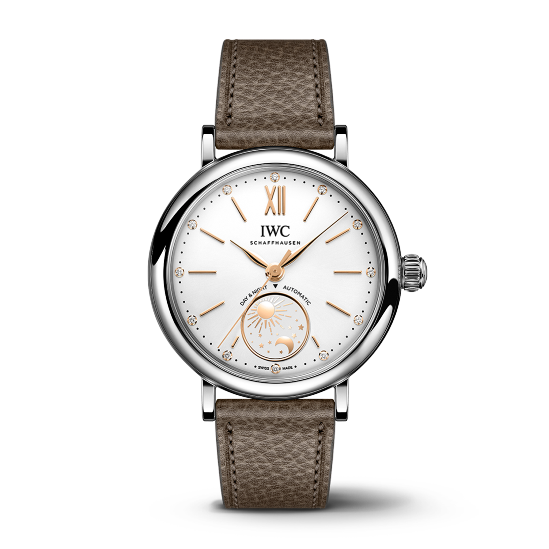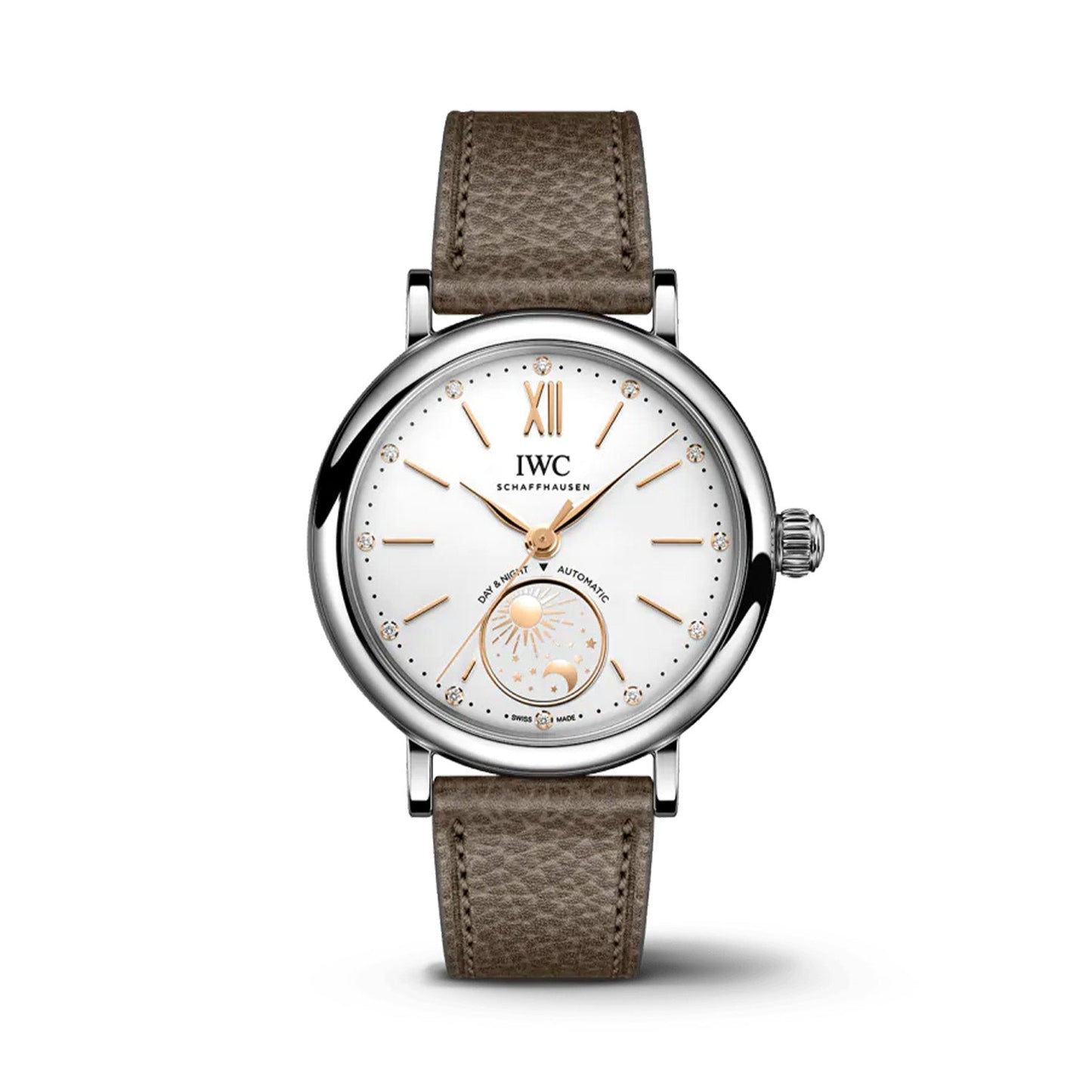 「ポートフィノ・オートマティックデイ&ナイト 34」。魅力的なデイ&ナイト表示が目を引くタイムピースです。
