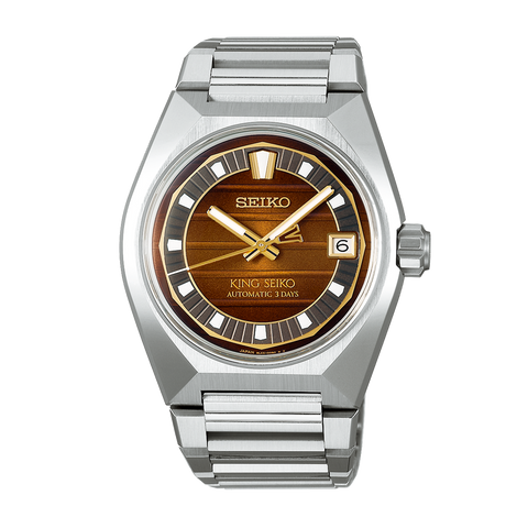 時代を超えて評価される2代目“KSK”からインスパイアされ、現代のデザインに落とし込んだキングセイコー。 国産高級腕時計としての新たな在り方を示し、時代をリードしたレガシーを持つキングセイコーは、実用性と美しいデザインの両立を実現しました。 大胆な多面カットが施されたケースは鏡面仕上げとヘアライン仕上げを組み合わせることで、シャープな質感を表現しています。"KSK"から受け継ぐインデックスやエンブレムのデザインで際立つキングセイコーならではの個性は唯一無二です。