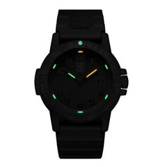 Luminoxのアイコニックモデル「NavySeal3000Series」のデザインをベースに、インデックスのLuminoxLIGHTTECHNOLOGY(ルミノックス・ライト・テクノロジー)を12個から6個に減少し、防水性能を100Mにしたモデル。ベゼルはウミガメ(SeaTurtle)の甲羅のような形状で、ミリタリーウォッチながらもシンプルなデザインに。