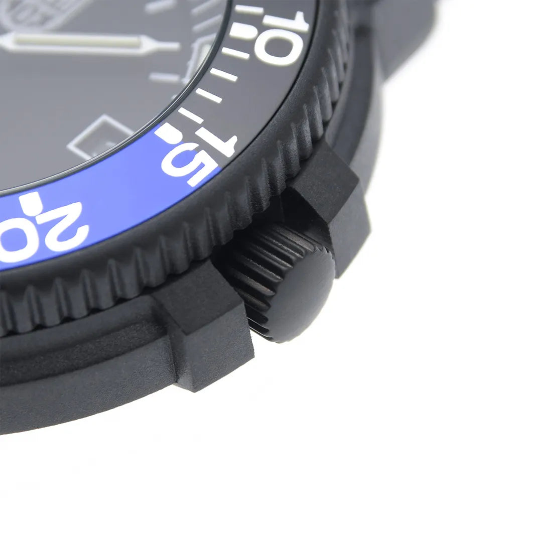 ケースには軽量且つ耐久性に優れたCARBONOX™を使用し、防水・耐圧性能を高めた2重のリューズ構造を採用することで20atm/200Mの防水性能を実現。