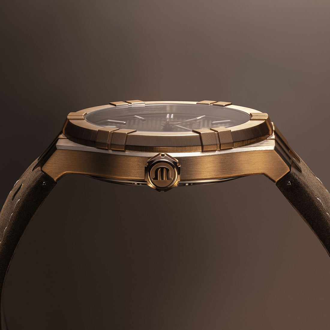 ブロンズ ダイアル: ブラウンのサンブラッシュ仕上げのクル・ド・パリ装飾 ダイアル ロジウムプレート、ホワイトSLN インデックス ロジウムプレート、ホワイトSLN 針 ストラップの素材: レザーストラップ イージーストラップ交換システムあり |