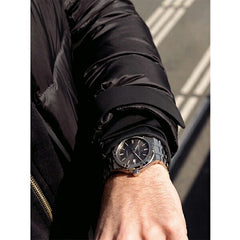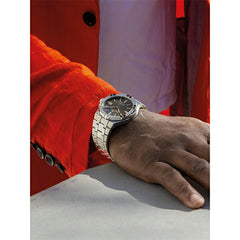 ステンレススティール ダイアル: アンスラサイトのサンブラッシュ仕上げのクル・ド・パリ装飾 ストラップの素材: ステンレススティール イージーストラップ交換システムあり ステンレススティール製ピンバックル |