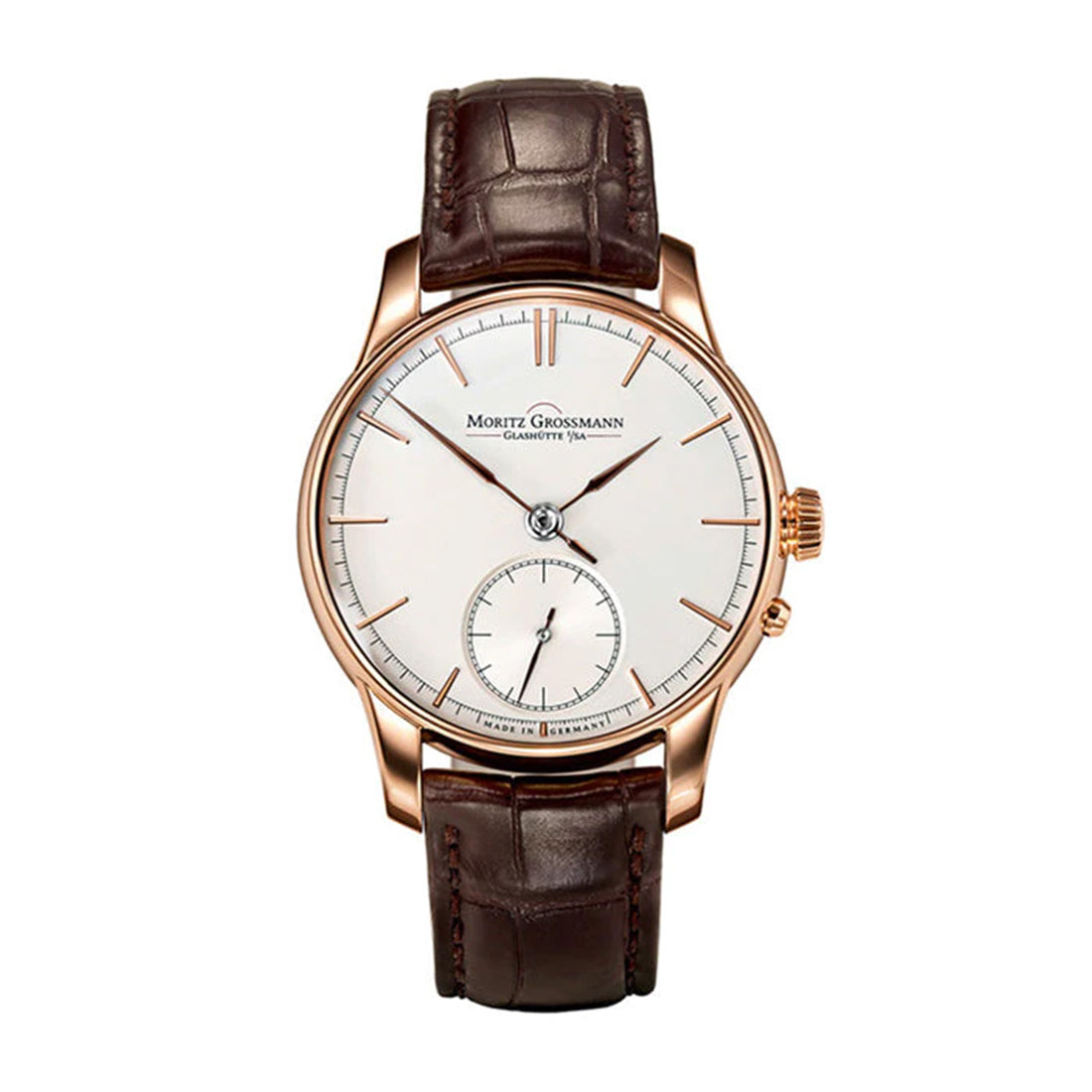 時計学校を設立するなどグラスヒュッテの時計産業の発展に大きく貢献した19世紀の時計師モリッツ・グロスマン。彼が求めたシンプルかつ完璧な機械式時計のビジョンと哲学を受け継いだマニュファクチュールが2008年にドイツ・グラスヒュッテにて創業しました。 究極の手仕事にこだわるタイムピースは自社工房で少量生産され、完璧なまでの合理性とメンテナンスのし易さを追求した逸品は世代を超えた価値と耐久性を約束します。 それぞれの部品に施された完璧な表面仕上げと装飾は、まさにグロスマンの職人技の真髄と言えるでしょう。この「仕上げ」の工程において完璧な機能を備えた腕時計が見た目にも秀逸な真の芸術品となるのです。 モリッツ・グロスマンは革新と卓越した技能を基に、伝統的であると同時に最新の仕上げ技術と高品質の素材を用いた、時計作りにおける「新しい時代の原点」を創り出します。