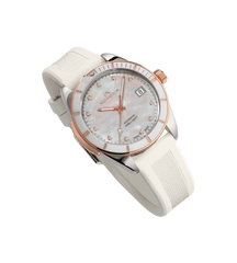 ステンレススチール(316L) ケースサイドにノルケインプレートを装着(18KREDGOLD) ケース径37mm 厚さ11.5mm 100m防水 両面無反射コーティング済みサファイアガラス サファイアガラスケースバック ノルケインロゴの刻印されたねじ込みリューズ(18KREDGOLD) ベゼル 18Kレッドゴールド/セラミックベゼル 逆回転防止ベゼル ローレット加工ベゼル 60分目盛 ダイアル マザーオブパール ノルケインロゴ カレンダー(3時位置) ダイアモンドインデックス(1.2mm,FullCut,TopWesselton) スーパールミノバを配した針 ストラップ 刻みデザイン入りのラバーストラップ ノーマインレザーストラップ |