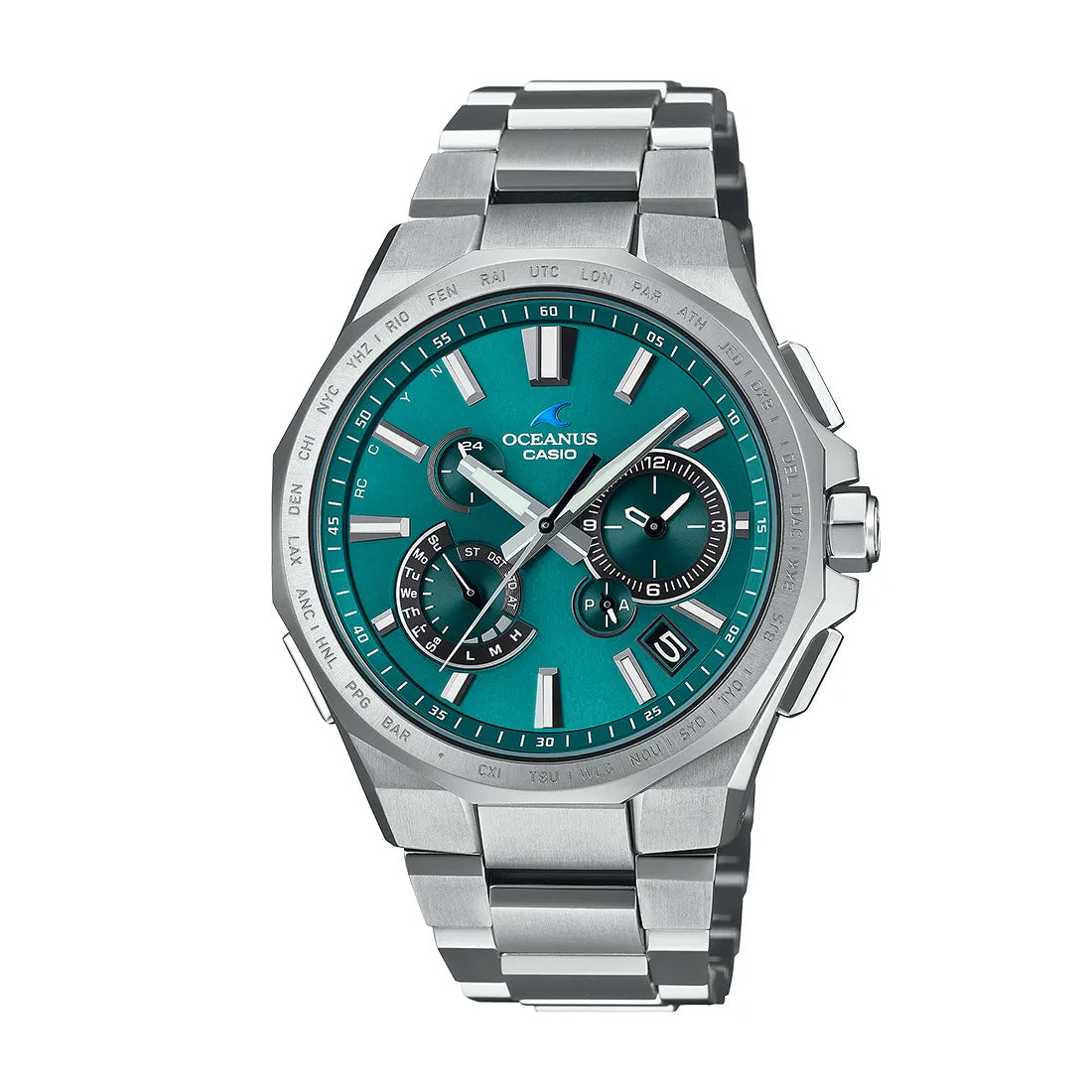 ザラツ研磨によって磨き上げられたケースと12面カットのベゼルによってソリッドなフォルムが特徴のOCEANUS CLASSIC(オシアナス クラシック)ラインのT6000シリーズ。ブランド20周年を記念したOCW-T6000SG-2AJRは、試行錯誤を重ねて開発したブランド初となるブルーグリーン蒸着のダイアルが美しい海を思わせます。
