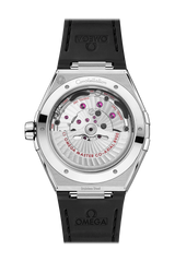 ブラックのラバーストラップが付属するこのタイムピースは、オメガ コーアクシャル マスター クロノメーター キャリバー8900が搭載されており、傷のつきにくいドーム型サファイアクリスタルガラスから眺めることができます。
