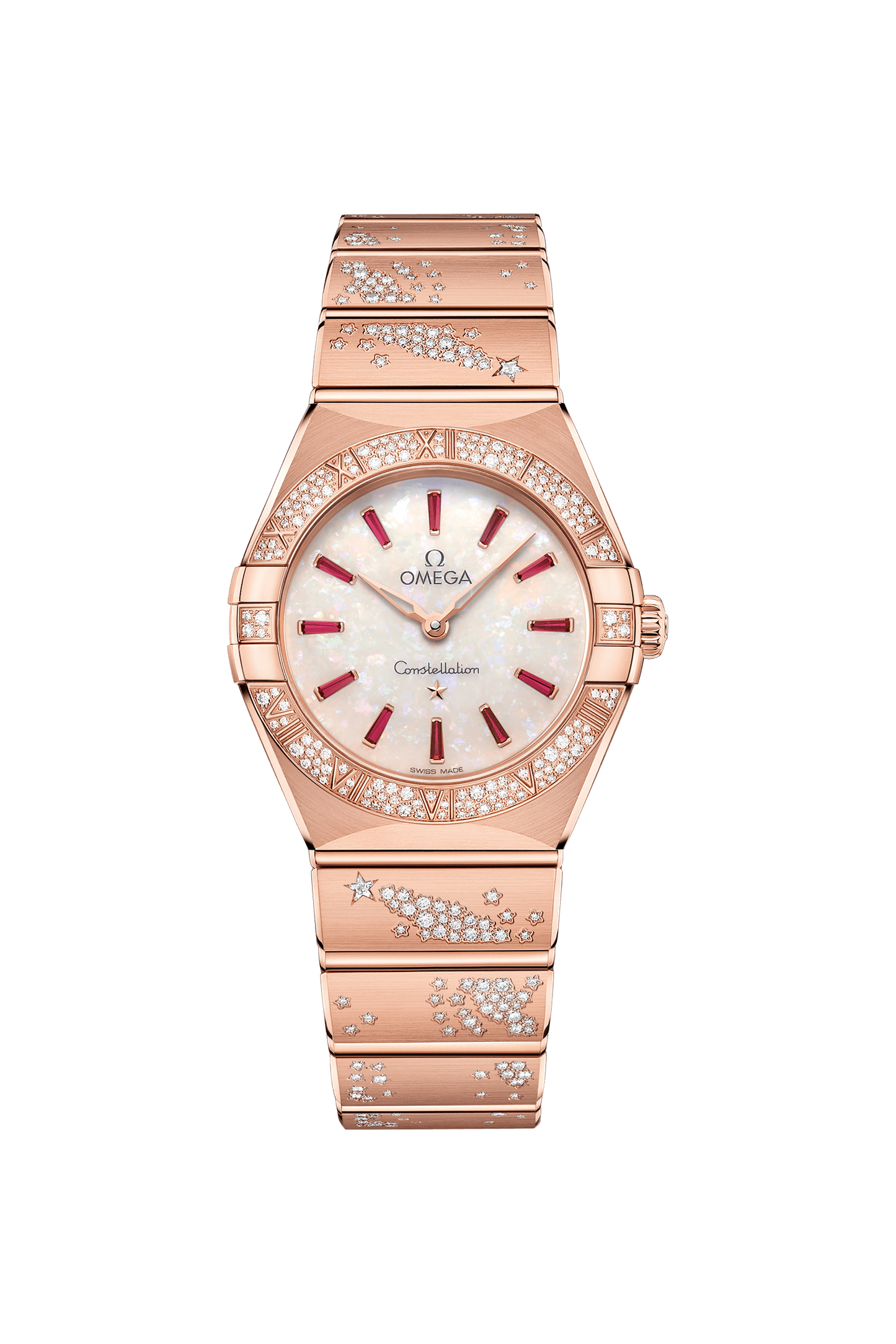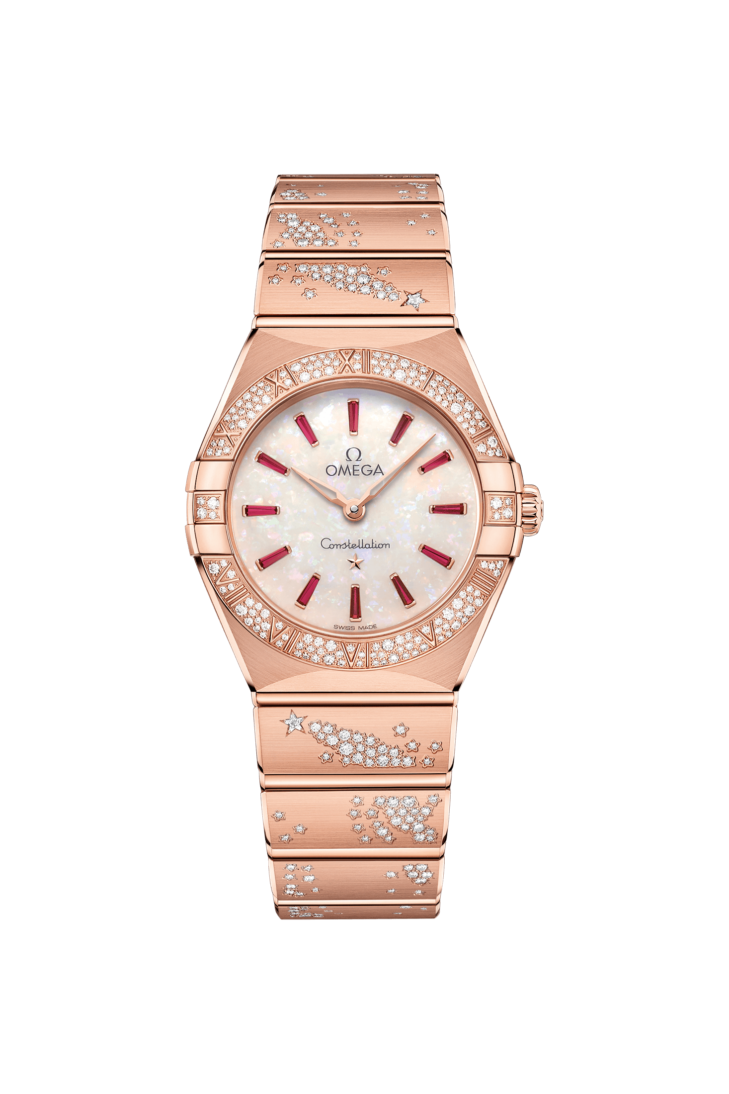 192石のブリリアントカット ダイヤモンドと4石のコンステレーション“スターカット”ダイヤモンドがセットされた18Kセドナ™ ゴールド製ブレスレットが手首を包みます。ダイヤモンドはすべて流れ星の形に配されています。オメガ キャリバー4061を搭載。ケースバックにはオメガの天文台のメダリオンが付いています。