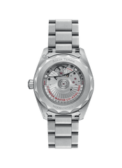 ブレスレットは、ポリッシュおよびサテン仕上げで、「スイス連邦計量・認定局(METAS)認定の最高水準を誇るオメガ コーアクシャル マスター クロノメーター キャリバー8800搭載。