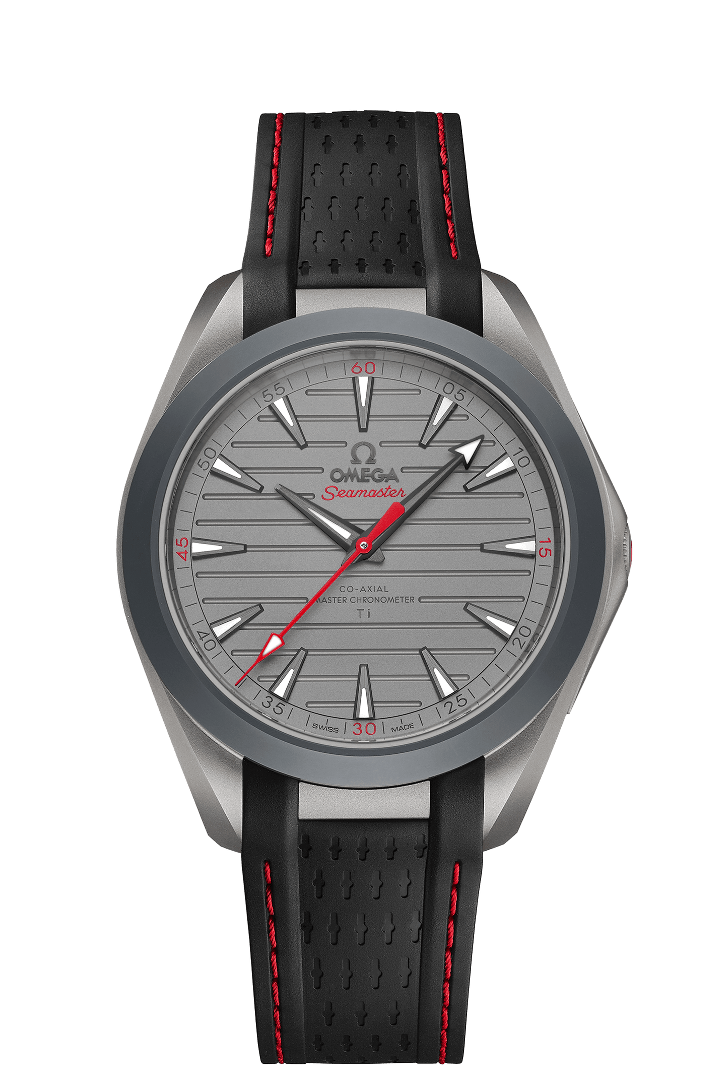 この41mmの「アクアテラ」は、アルミニウム製の秒針やシーマスターのロゴ、15分毎のインデックス、ストラップのステッチなど、レッドが大胆にあしらわれています。オメガ初のチタン製ムーブメントである、オメガ コーアクシャル マスター クロノメーター キャリバー8928チタン搭載。