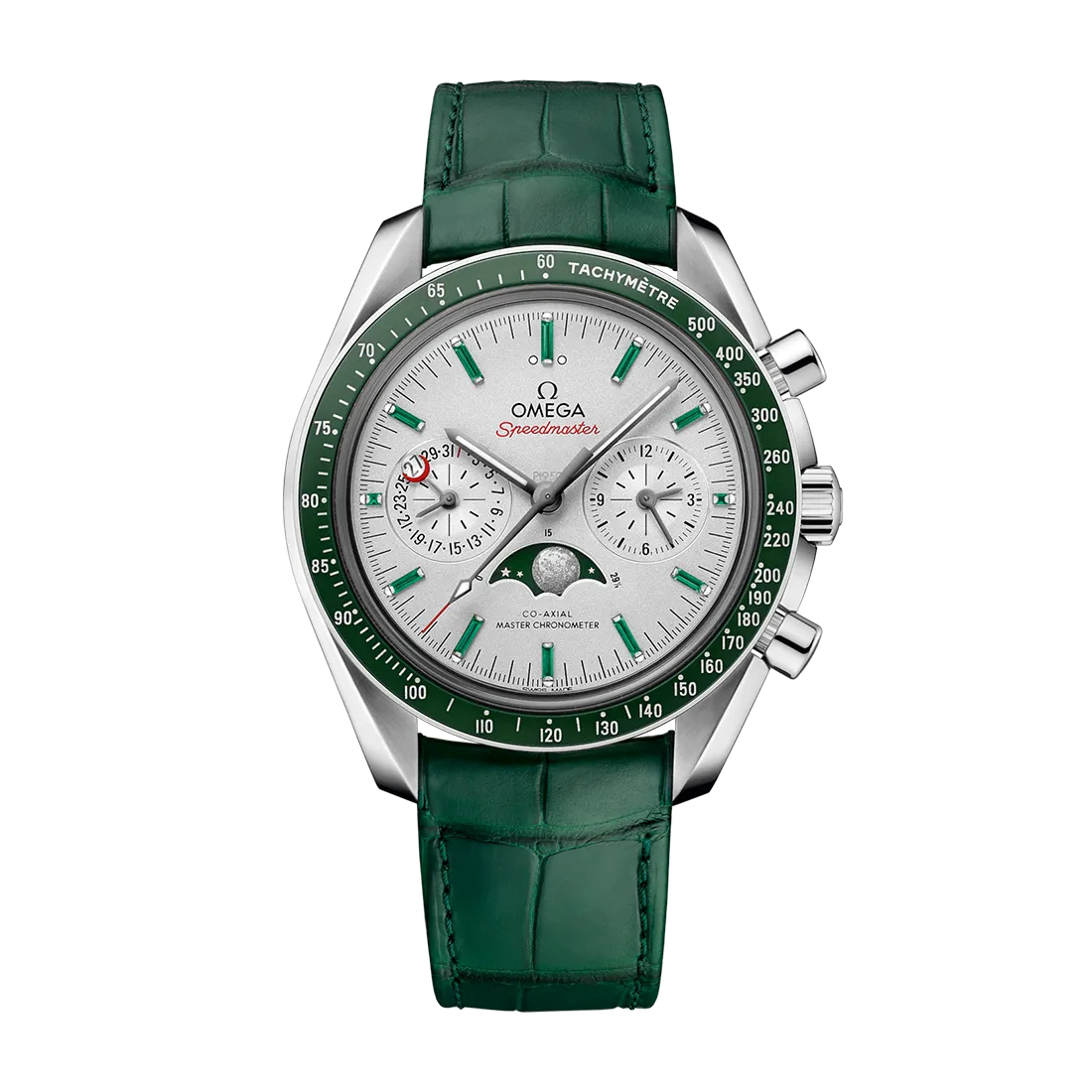 「オメガ スピードマスター」は、6回の月面着陸プロジェクトに携帯された、オメガを代表するタイムピースのひとつです。歴史へのオマージュを捧げるこのムーンフェイズモデルは、優れた素材と精度をクラシックな「スピードマスター」のデザインに組み合わせました。