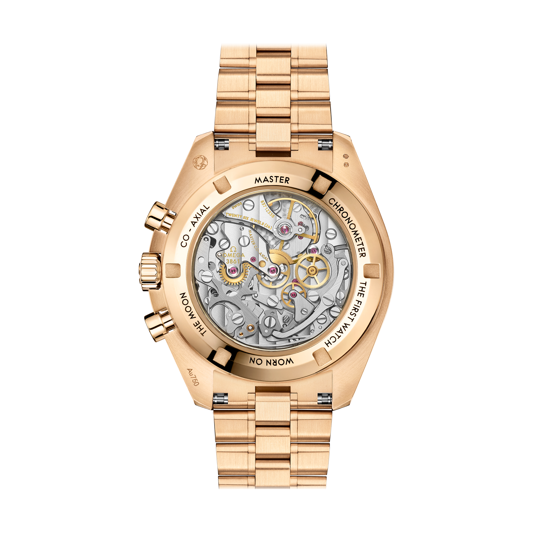 このムーンウォッチには、オメガのコーアクシャル マスター クロノメーター キャリバー3861が搭載されています。この手巻きムーブメントは、最新のテクノロジーを駆使し、高い精度と耐磁性を誇ります。キャリバー3861は、METAS認定を受けており、その信頼性と性能は世界中で高く評価されています。