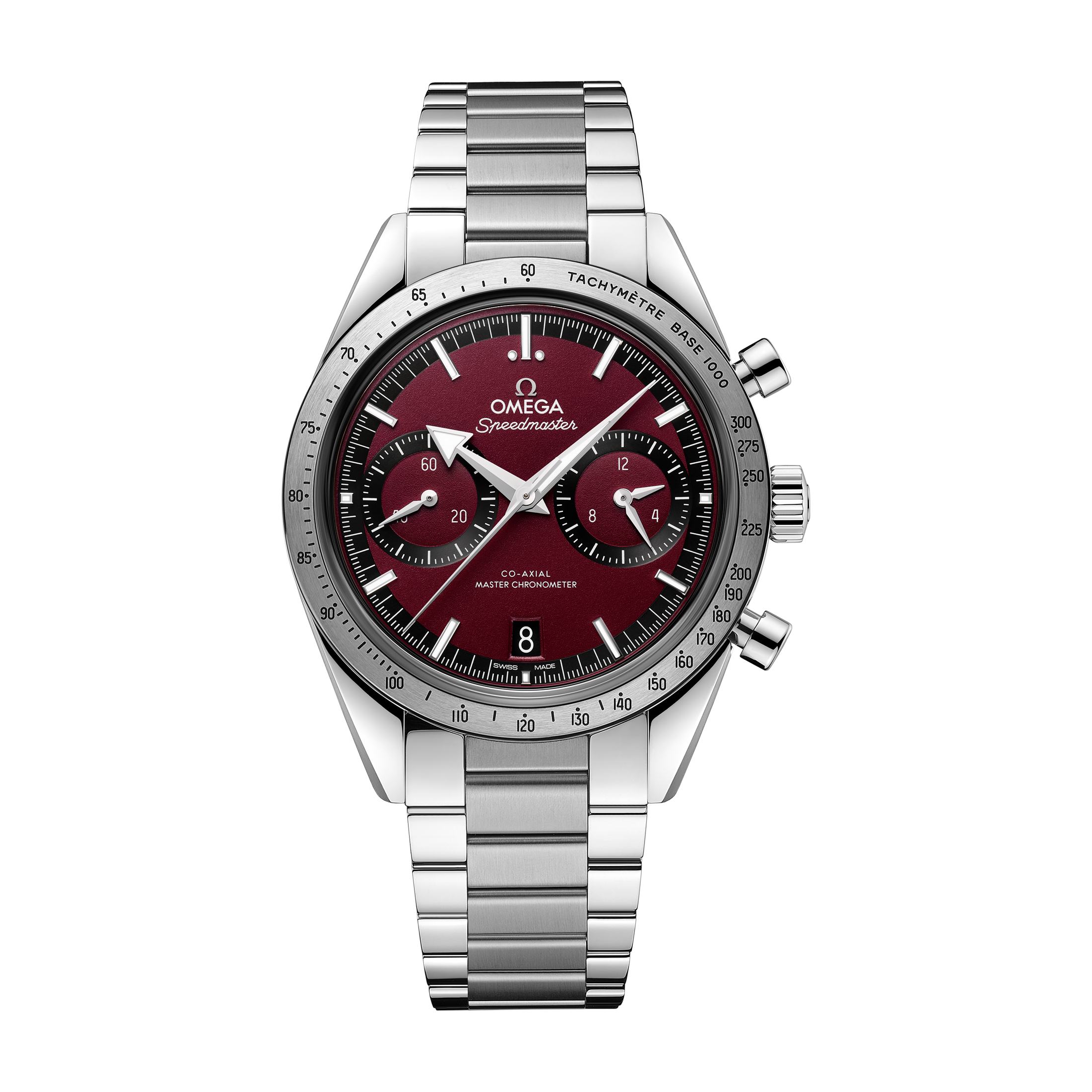 スピードマスター '57は、1957年に初めて登場したオリジナルモデルのデザインにインスパイアされています。クラシックなデザインとモダンなエレメントが見事に調和したこのモデルは、ヴィンテージ感を保ちながらも現代的なスタイルを提供します。サンドイッチ構造のクラシックブラック、サンバーストブルー、グリーン、バーガンディ、それぞれの文字盤にスティールケースが組み合わさり、視認性と高級感が際立ちます。