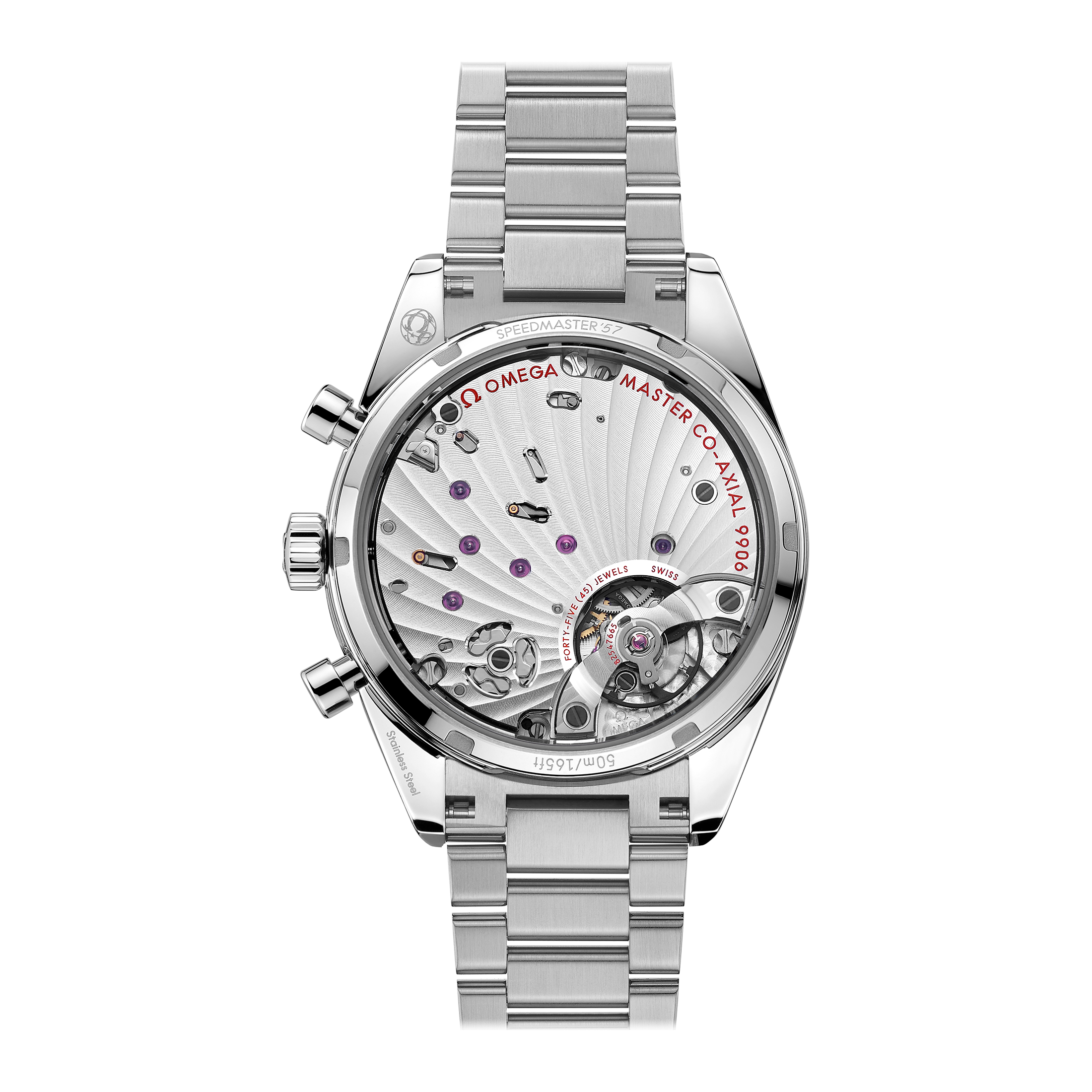 このスピードマスター '57には、オメガのコーアクシャル マスター クロノメーター キャリバー9906が搭載されています。この手巻きムーブメントは、最新の技術を駆使し、高い精度と耐磁性を誇ります。キャリバー9906は、METAS認定を受けており、その信頼性と性能は世界中で高く評価されています。また、このムーブメントは、約60時間のパワーリザーブを持ち、日常生活のあらゆるシーンで信頼できるパフォーマンスを発揮します。