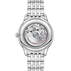 コーアクシャル エスケープメント搭載の自動巻きムーブメント。METAS認定のマスター クロノメーター。15,000ガウスの耐磁性能。フリースプラングテンプにシリコン製ヒゲゼンマイ、両方向回転による自動巻き。6時位置にスモールセコンド表示。アラベスク調のジュネーブウェーブが美しいロジウム仕上げのローターとバランスブリッジ。 55時間 パワーリザーブ 自動巻き 振動数 3.5 HZ |