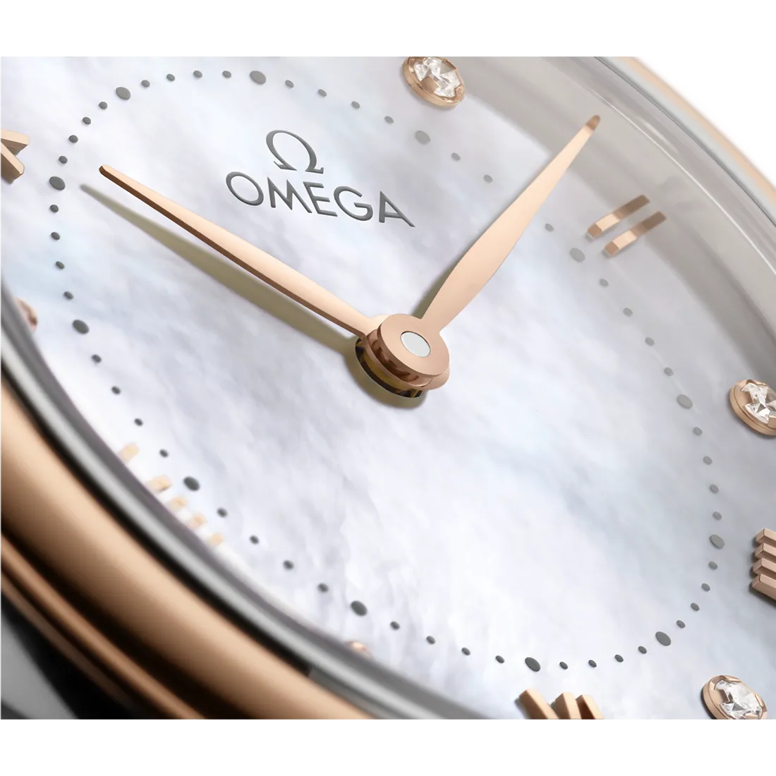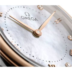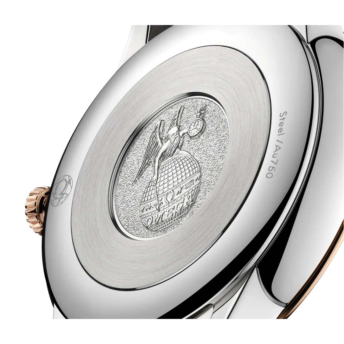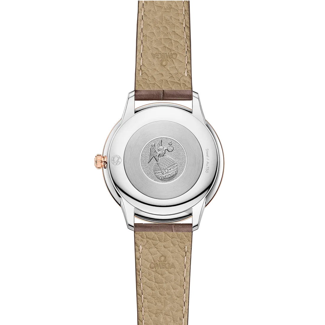 この時計には、きらめくトープブラウンのレザーストラップが付属しており、最低でも48か月の電池寿命を備えたオメガ クォーツキャリバー4061によって駆動しています。