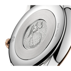 このタイムピースのシンプルな外観は、内側ドットで描かれたミニッツトラック と、ケースバック全体にエンボス加工であしらわれた時の神クロノスのメダリオンによって引き立てられています。