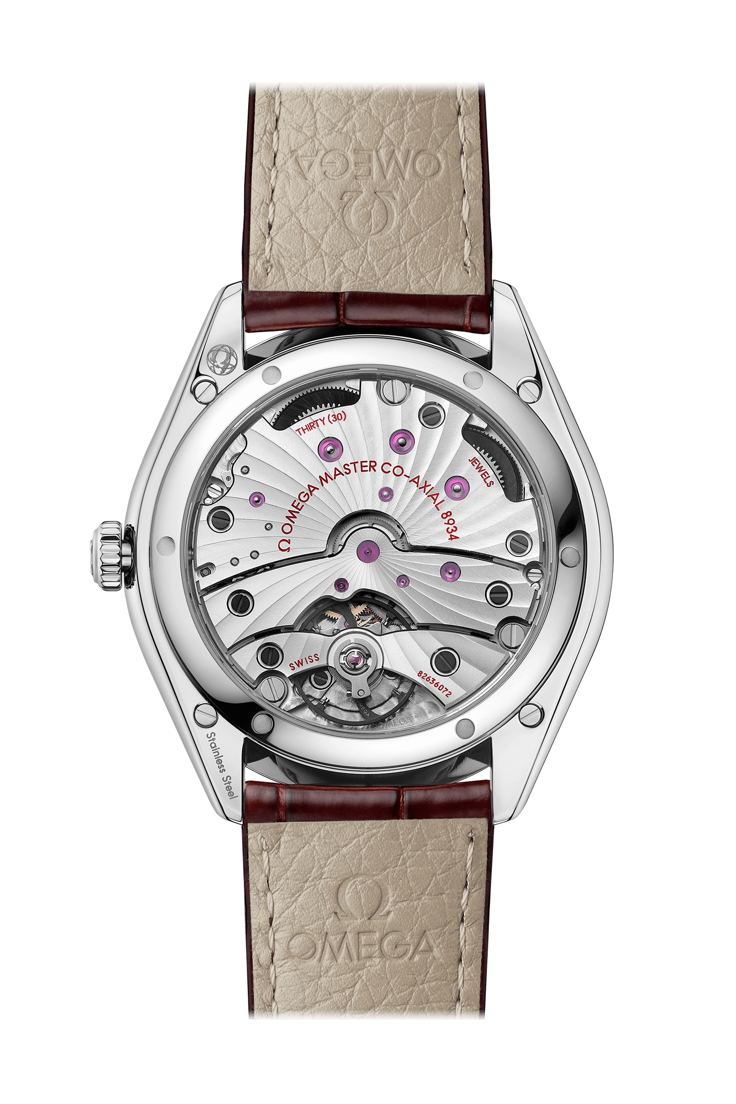 コーアクシャル エスケープメント搭載の手巻きムーブメント。METAS認定のマスター クロノメーター。15,000ガウスの耐磁性能。12時位置にパワーリザーブ表示、6時位置にスモールセコンド表示。フリースプラングテンプにシリコン製ヒゲゼンマイ、直列に配置されたツインバレル。アラベスク模様のコート・ド・ジュネーブ装飾とロジウムプレート仕上げ。 72時間 パワーリザーブ 手巻き 振動数 3.5 HZ |