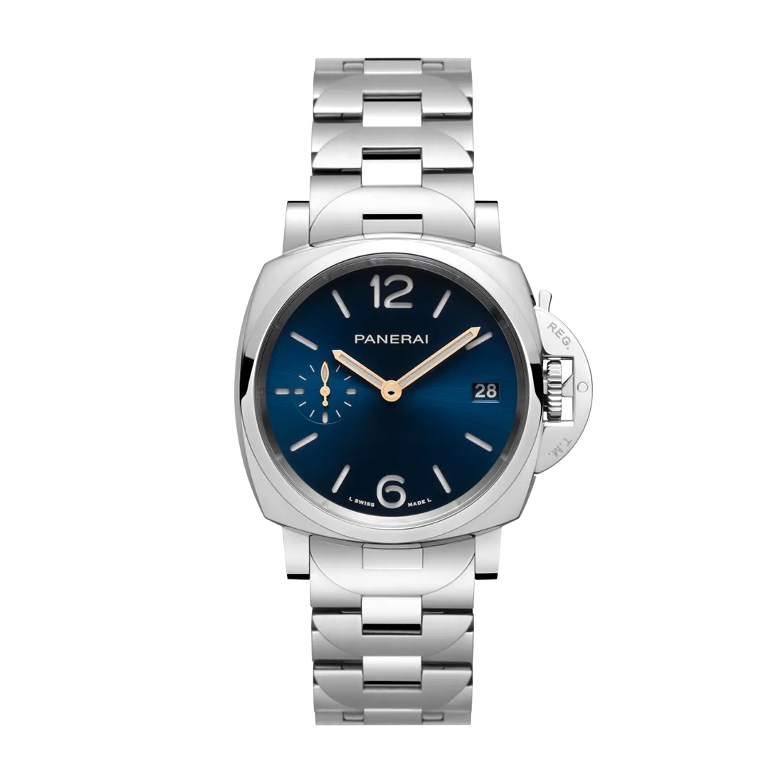 「ルミノール ドゥエ」コレクションは、パネライの作品の頂点に立つルミノール 1950のケースにインスピレーションを得ています。 これらすべての要素は、パネライの歴史的なモデルからそのまま取り入れたものですが、スポーツスピリットを体現したり、よりエレガントで特別な場面でも身に付けることができるように時計の汎用性を高めるため、わずかにリニューアルが施されています。