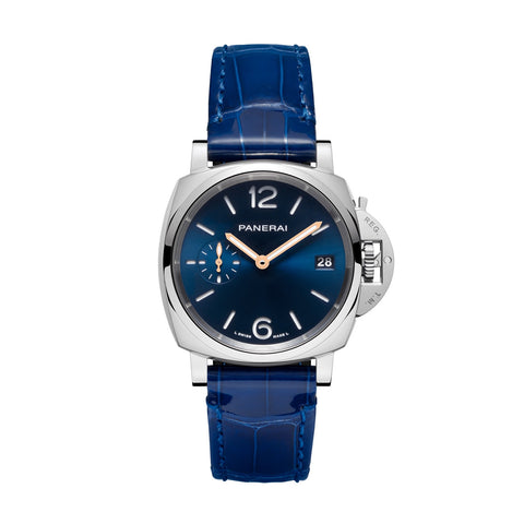 「ルミノール ドゥエ」コレクションは、パネライの作品の頂点に立つルミノール 1950のケースにインスピレーションを得ています。 これらすべての要素は、パネライの歴史的なモデルからそのまま取り入れたものですが、スポーツスピリットを体現したり、よりエレガントで特別な場面でも身に付けることができるように時計の汎用性を高めるため、わずかにリニューアルが施されています。