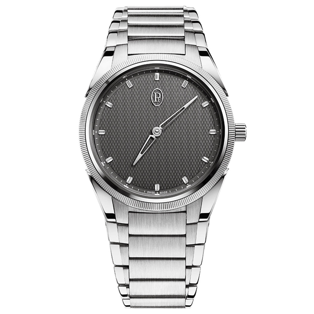 『トンダ PF オートマティック』は、メゾンの精神がもっとも純粋な形で表れたモデルです。その 主張の強いアイデンティティは、控えめなデザイン、大きく開かれたダイヤル、落ち着いたトーンの カラーバリエーション、妥協のない仕上げなどの、相反する価値観から生まれています。これらの価 値観は、細めの手首に理想的な36mm径の新しい『トンダ PF オートマティック』にも受け継が れています。