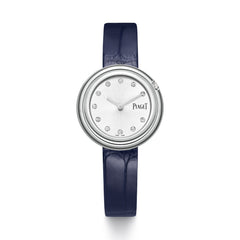 ステンレススチール製ケースにラウンドブリリアントカットダイヤモンド1個(約0.05ct)。文字盤にラウンドブリリアントカットダイヤモンド11個(約0.07ct)。インターチェンジャブルストラップ。56Pピアジェ自社製クオーツムーブメント。