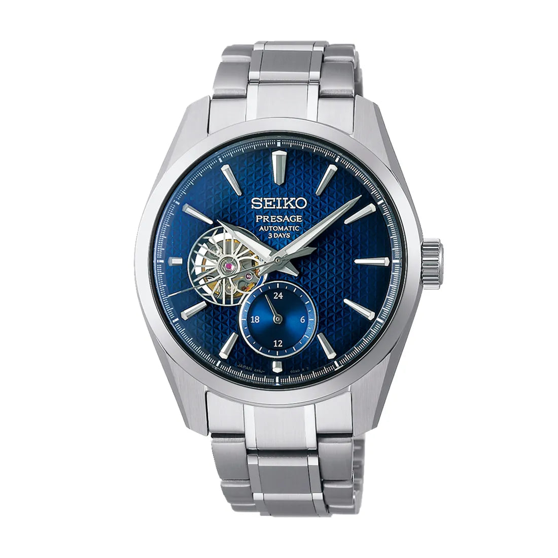 100年を超える時計づくりを継承し、世界に向けて日本の美意識を発信するプレザージュ。 2011年、SEIKOが生み出したブランドです。機械式時計を、日常のあらゆる場面で使いやすくするために独自開発した3つの技術「トライマチック」を採用。漆や琺瑯などを用いた美しい文字盤、隙のない仕上げはジャパンメイドならではのクオリティを誇ります。 和の感性を現代にマッチさせるデザインは実用性と優雅さが融合した機械式腕時計を生み出しました。日本の伝統と技術と組み合わせ、日々新たな価値を提案しています。