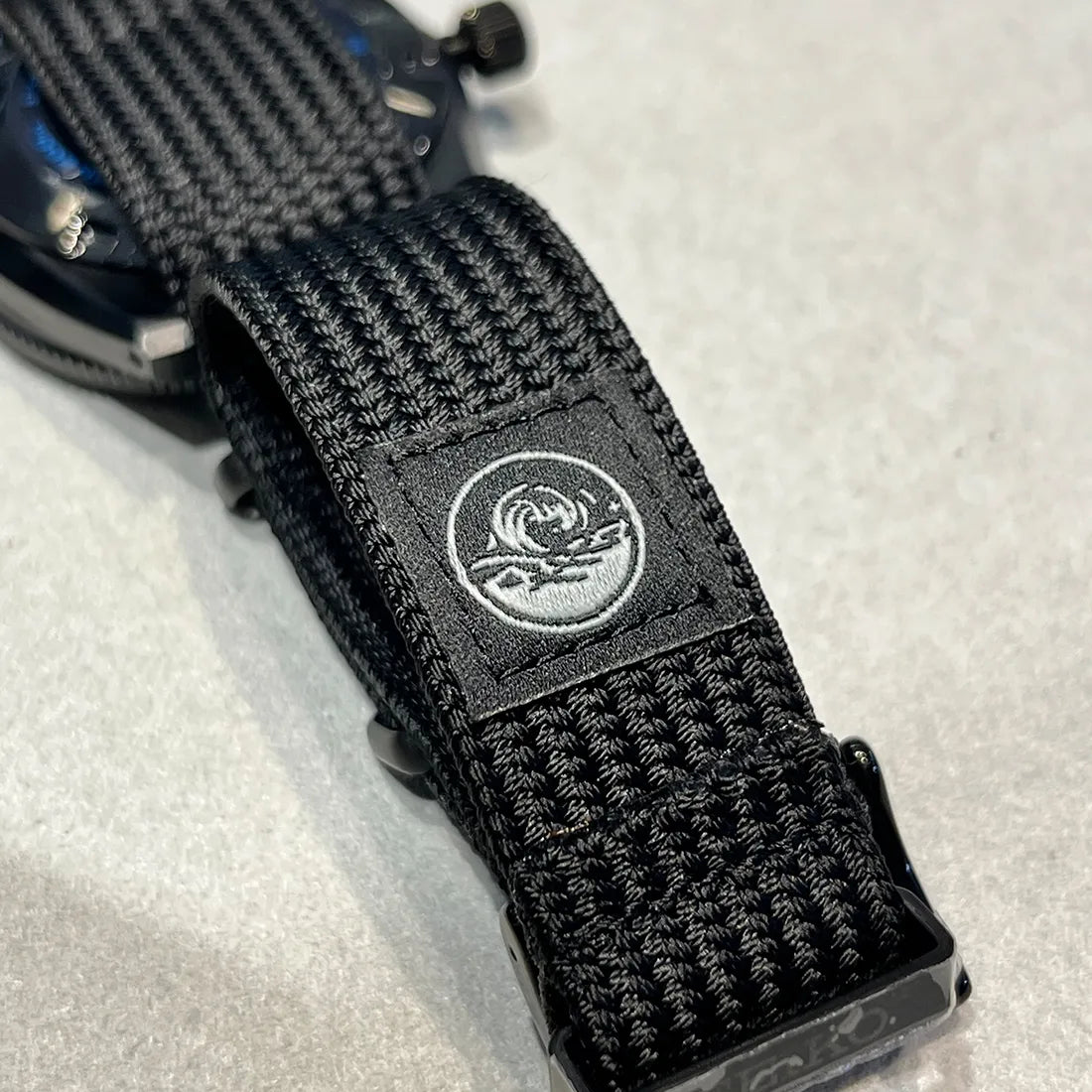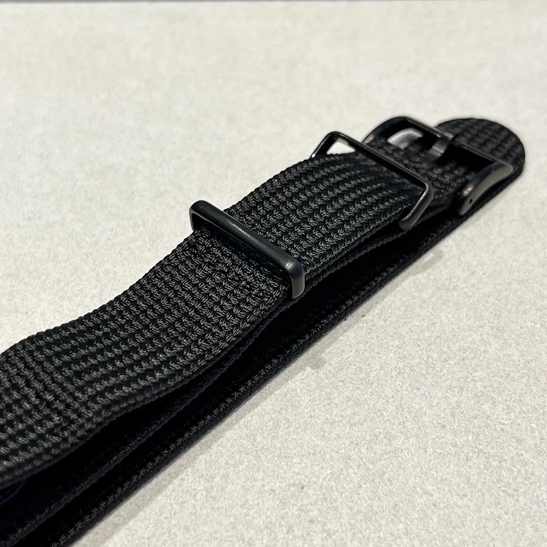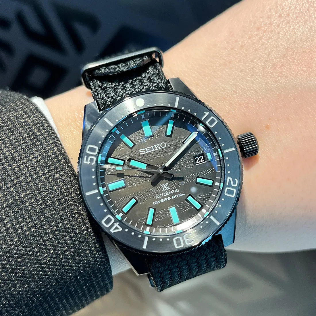 ケースの側面と回転ベゼルの外周部にザラツ研磨を施すことで、ヘリテージの造形に与えられた歪みのない鏡面が、美しい輝きを放ちます。ストラップには、「製紐(せいちゅう)」と呼ばれる日本の伝統技法で編み込まれ、ダイバーズウオッチに相応しい強度を誇るファブリック素材を採用。