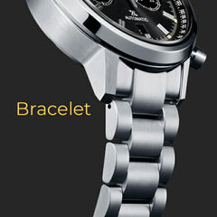 ステンレス / 裏ぶた:ステンレスとガラス ケースコーティング: ダイヤシールド ガラス材質: デュアルカーブサファイア ガラスコーティング 内面無反射コーティング ルミブライト: あり(針・インデックス) 中留:ワンプッシュ三つ折れ方式 |