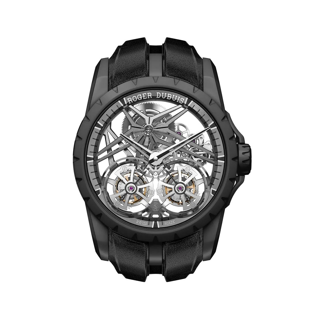 ジュネーブのロジェ・デュブイ マニュファクチュールで製造されるスケルトンキャリバーは、エクスカリバーコレクションの独特の感性を凝縮したエッセンス。オートオルロジュリーの最も権威ある認証の一つ、ジュネーブ・シールを保有するエクスカリバー ウォッチは、現代美術作品のように造形されています。一つ一つの部品が手仕上げによるウォッチは情熱を象徴します。熟練時計師たちの手から生まれた創造的なメカニズムがウォッチの正面に姿を表し、生き生きと鼓動を打ちます。