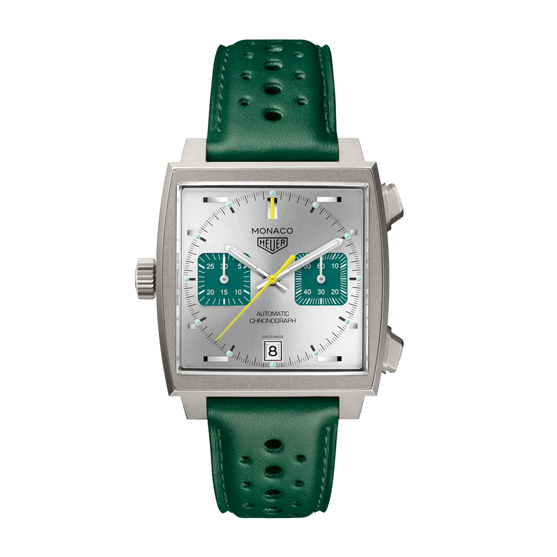 モーターレーシングのヘリテージの本質を閉じ込めた、タグ・ホイヤー モナコ クロノグラフ レーシンググリーン。レーシングカーのカラーを巡る壮大なストーリーを大胆に継承するこのカリスマ的タイムピースは、モナコの比類ない個性を示す鮮やかでエレガントな美学を体現しています。インスピレーションとなったのは、英国のモーターレーシングの輝かしい歴史を象徴するアイコニックな「レーシンググリーン」カラーです。