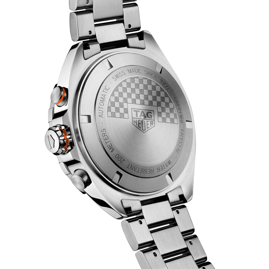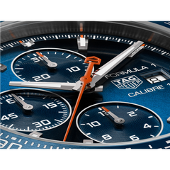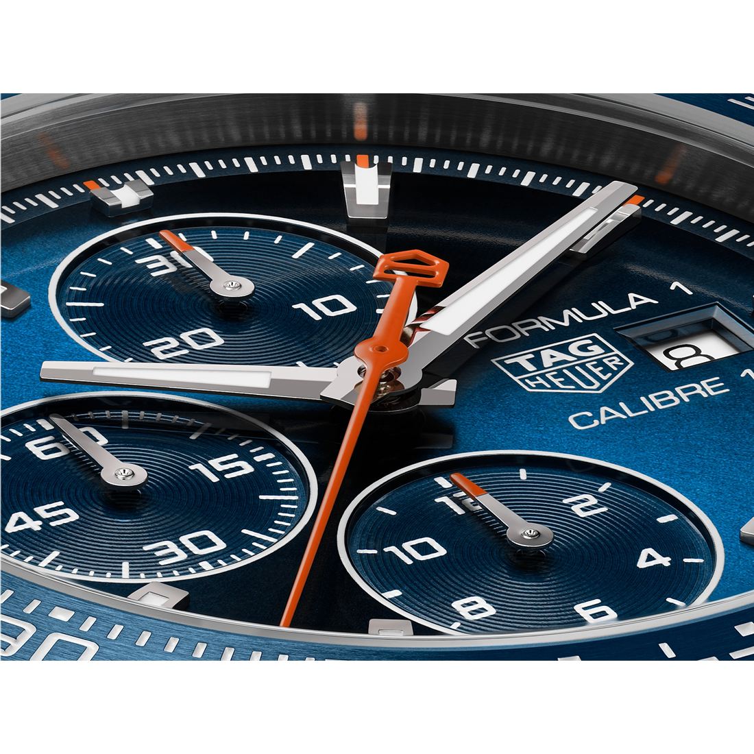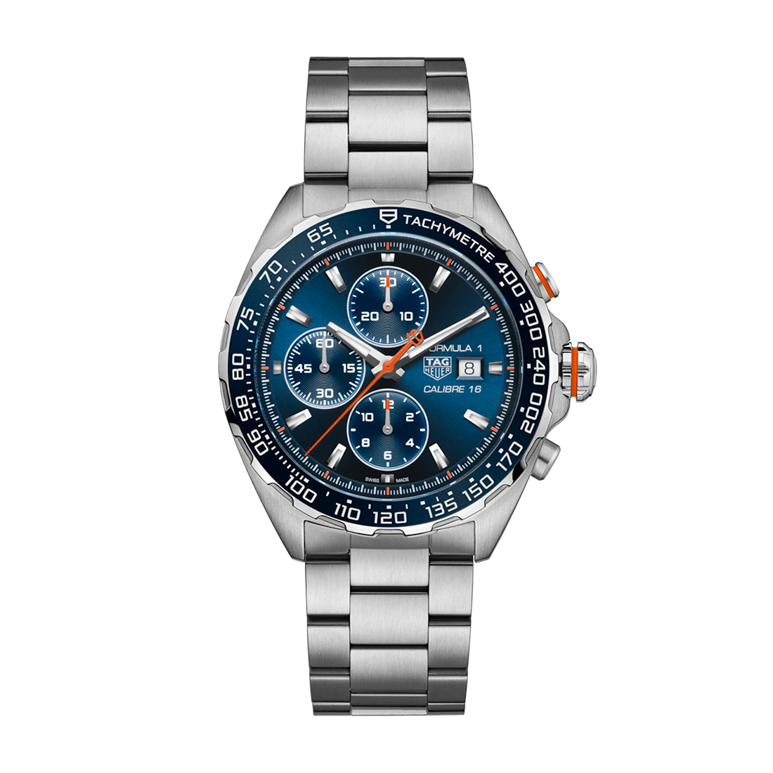 タグ・ホイヤー フォーミュラ1 クロノグラフは、スポーティなエッジを効かせたエレガンスを求める紳士的なドライバーに最適。どこへでも身に着けて行けるタイムピースです。鮮やかなオレンジのハイライトがエネルギー溢れるルックを作る、スピードを愛する人に捧げるケース径44mmのウォッチです。