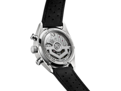 逆パンダ ダイヤルをもつ2447 NS モデルをベースにした、タグ・ホイヤー グラスボックスのプレステージなブラックの39mmモデル。カレラのシグネチャーデザインにモダンなひねりを加えています。ラグジュアリーなパンチング加工を施したカーフスキンストラップを合わせた、大胆に生きる人のためのウォッチです。
