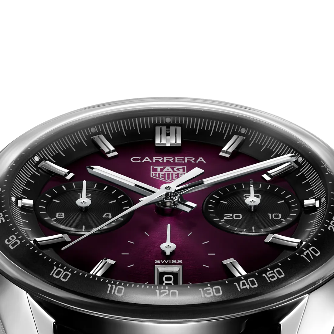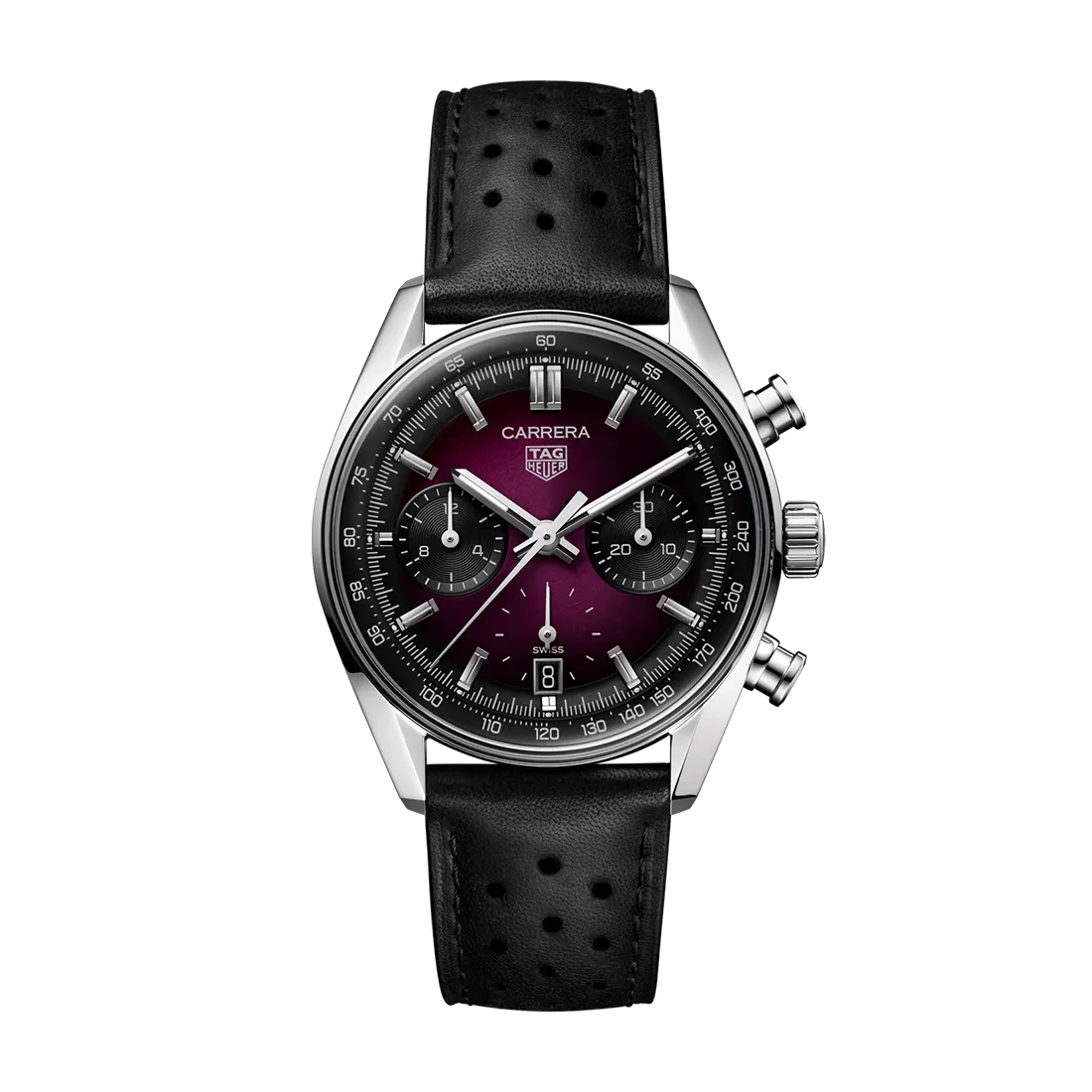 最先端のデザインと鮮やかなカラーの融合がスタイルを格上げするタグ・ホイヤー カレラ クロノグラフ。印象的なサンレイ加工サテン仕上げのスモーキーパープル ダイヤルに、精度とエレガンスを兼ね備えた、どんなシーンにもマッチする大胆なユニセックスのタイムピースです。