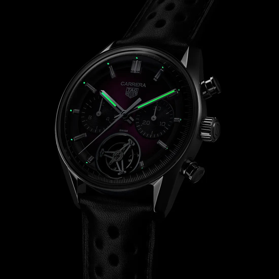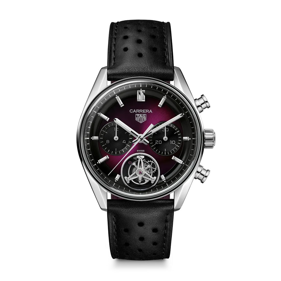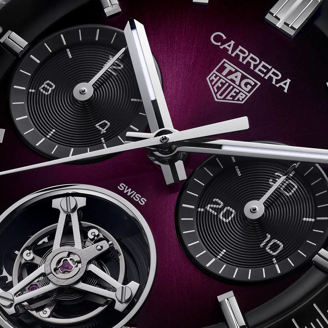 高精度とエレガンスを大胆な新色で彩った、タグ・ホイヤー カレラ トゥールビヨン クロノグラフ。サンレイ加工サテン仕上げのスモーキーパープルダイヤルと自社製トゥールビヨンムーブメント、ホイヤー02(TH20-09) を搭載。モダンな時計愛好家にふさわしい比類のない洗練をもたらす限定エディションです。
