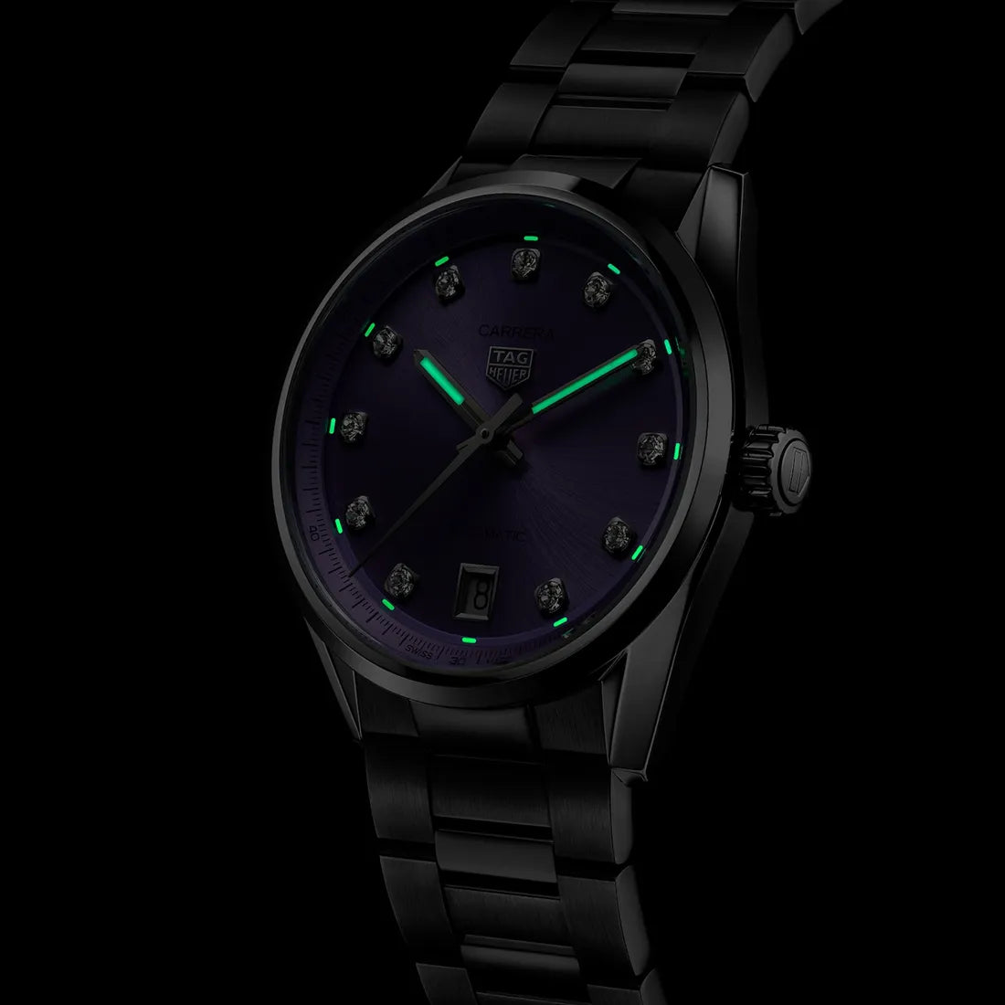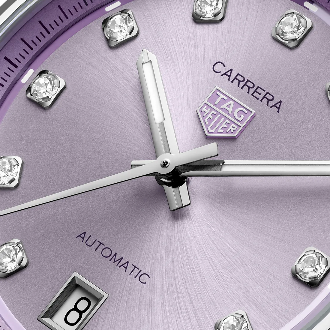 魅惑的なライラックカラーダイヤルでコレクションに新鮮なタッチをもたらす36mmのタグ・ホイヤー カレラ デイト。ダイヤモンドをセットしたインデックスを備え、キャリバー7 ムーブメントを搭載した、エレガンスと高精度を兼ね備えたタイムピースです。