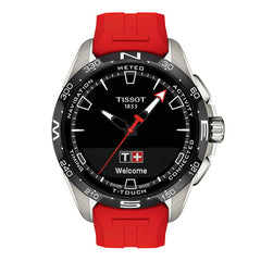 TISSOT T-TOUCH CONNECT SOLAR [ティソ T-タッチ コネクトソーラー] は1999年を皮切りに次々と登場したタッチパネル式ウォッチ T-タッチ コレクションの最新モデル。2004年に発表したスマートフォン連動機能搭載のHigh-T [ハイ-T] で得たノウハウを注ぎ込み、スマートフォン連動を実現。ディスプレイの日本語表示も追加しました。