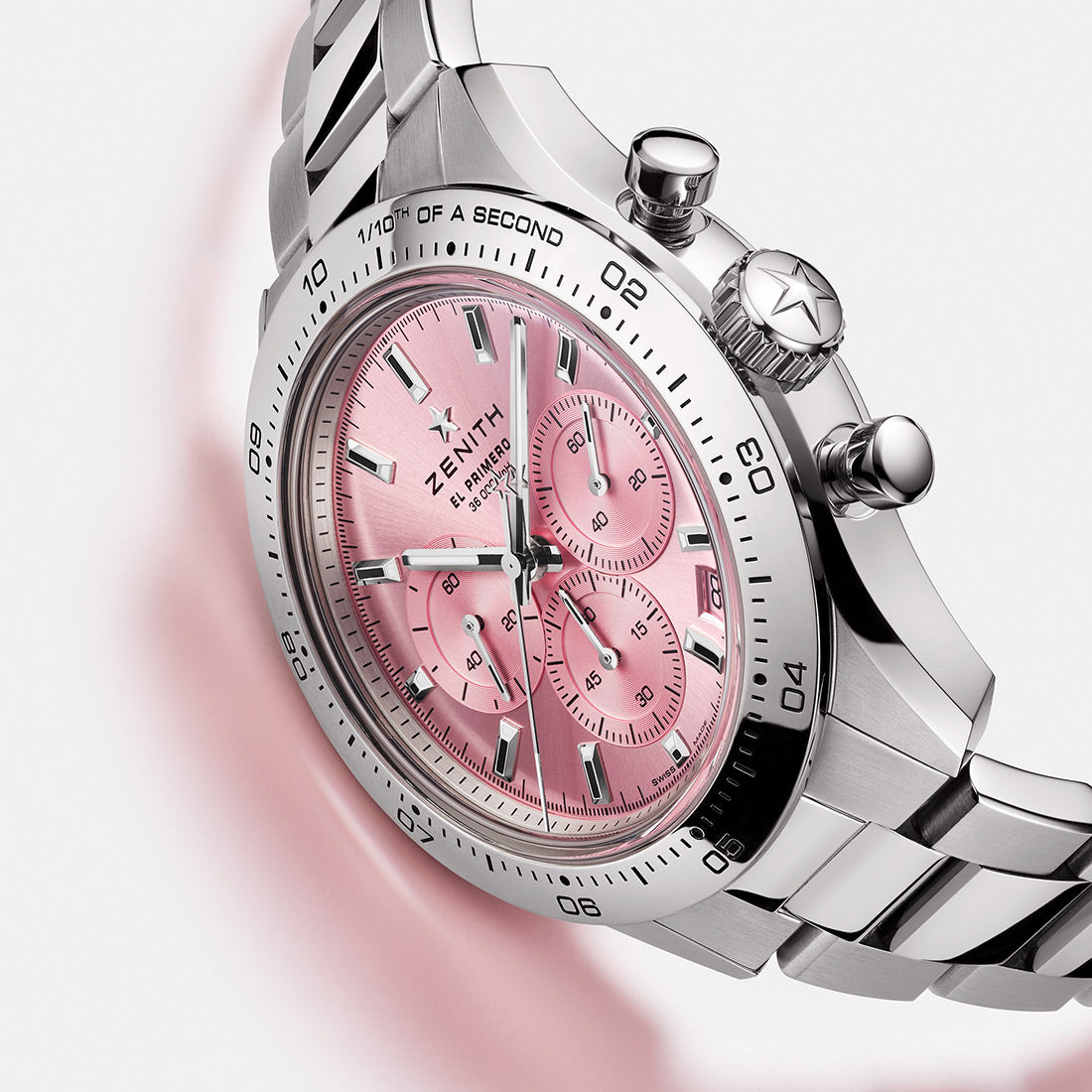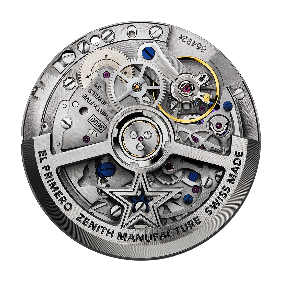 高振動エル・プリメロ 3600自動巻クロノグラフムーブメントを搭載し、1/10秒精度のクロノグラフ機能と60時間のパワーリザーブを備えています。